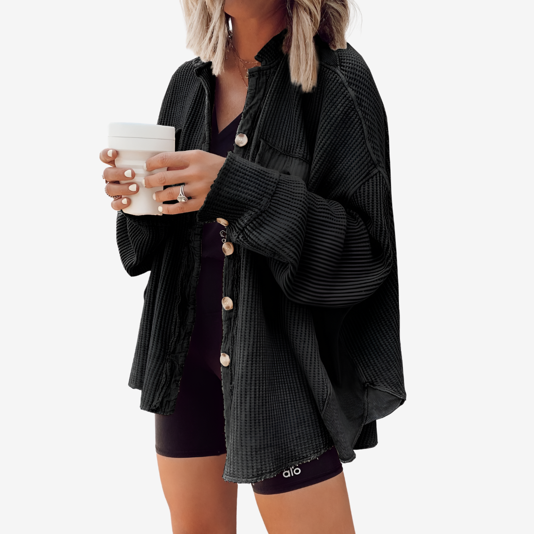 Claudine™ allie confort et style décontracté. Confectionnée dans un tissu doux et côtelé, cette chemise oversize apporte une touche chic et décontractée à vos tenues du quotidien. Portée ouverte sur un débardeur ou boutonnée pour une touche d'originalité, elle est à la fois polyvalente, confortable et moderne.